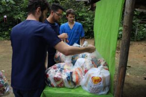 Durante a ação também foram doados itens de higiene pessoal e absorventes do projeto realizado pelo curso contra a pobreza menstrual. Os alimentos foram arrecadados em campanhas pelos alunos e também doados pela equipe de e-sports Wolf AM.